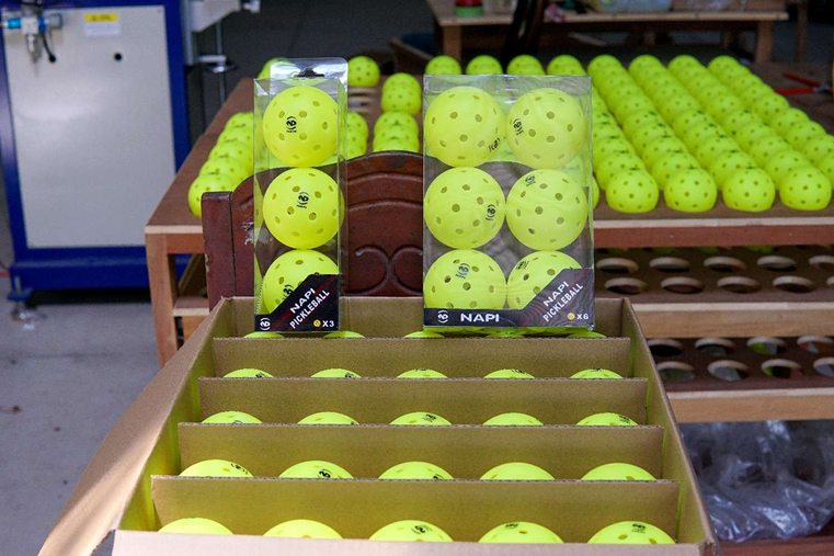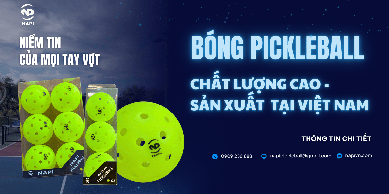 NAPI Pickleball là đơn vị chuyên sản xuất bóng pickleball chất lượng cao, với xưởng sản xuất đặt tại Cần Thơ, Việt Nam. Chúng tôi tự hào mang đến sản phẩm bóng thi đấu đạt chuẩn USAPA, được sản xuất bằng công nghệ đúc ly tâm hiện đại, đảm bảo độ bền, độ nảy và hiệu suất tối ưu trong mọi trận đấu. Bóng NAPI có thiết kế 40 lỗ tiêu chuẩn, đường kính 74 mm, trọng lượng 26 gr, phù hợp cho cả thi đấu chuyên nghiệp lẫn luyện tập hàng ngày.